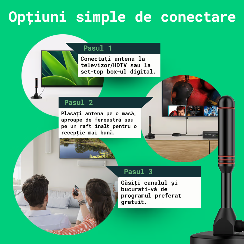 Antena HDTV este foarte ușoară și nu ocupă mult spațiu, astfel încât poate fi instalată aproape oriunde.