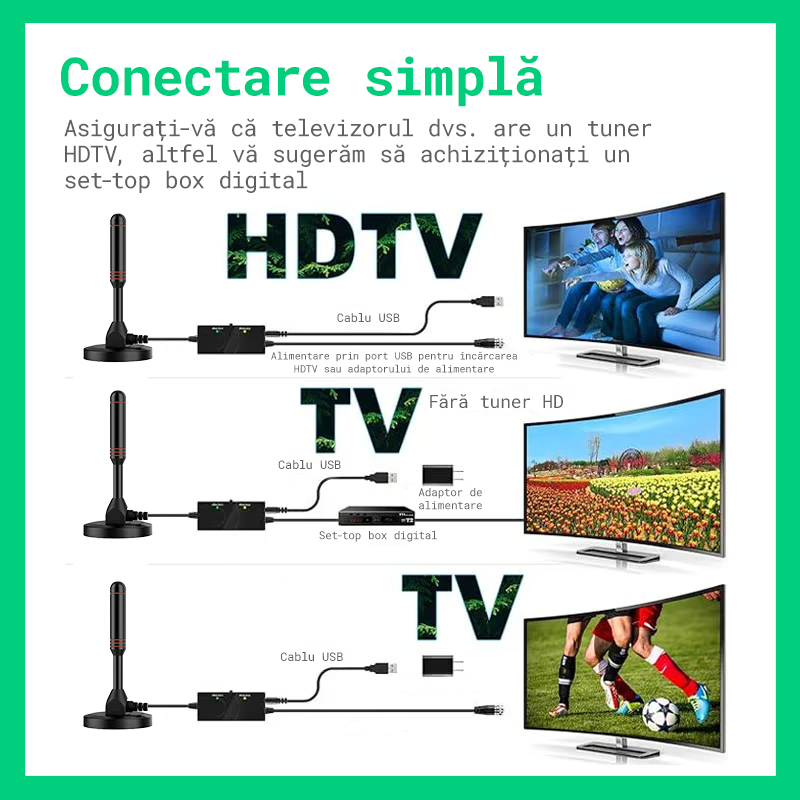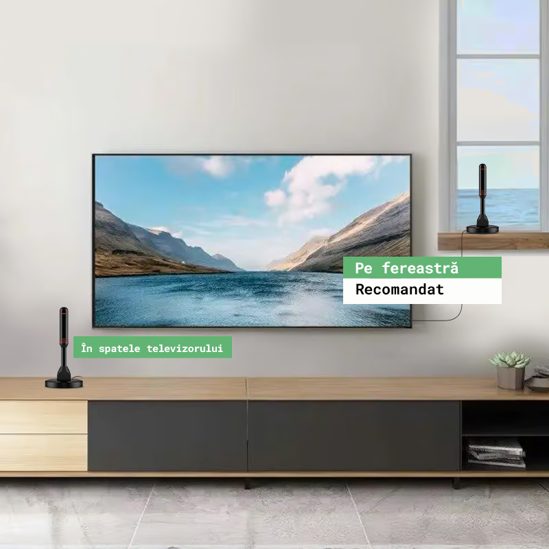 Antena HDTV are un câștig ridicat, o sensibilitate mare și o acoperire largă, asigurând o recepție stabilă și de calitate a semnalului.